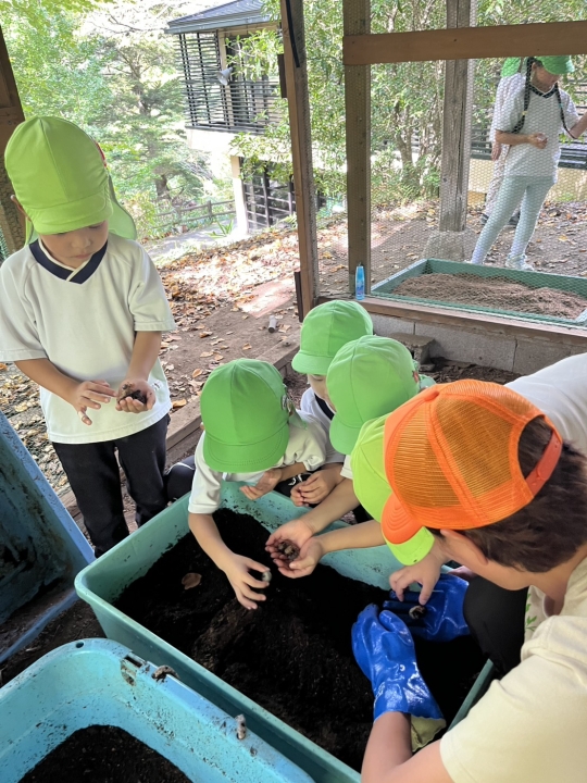 暑くもなく過ごしやすいお天気で、ダンゴムシを探したり、蝶々を追いかけたり、思い思いに遊ぶ子ども達。