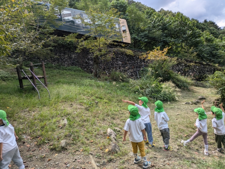 センターまでの上り坂が、以前より早くしっかりと歩けていて、この数カ月の子ども達の成長を感じました。季節ごとの自然の変化がよく感じられ、訪れる度に色んな自然物に触れて遊べる野外保育センターは、何回でも来たくなる素敵な場所です。
